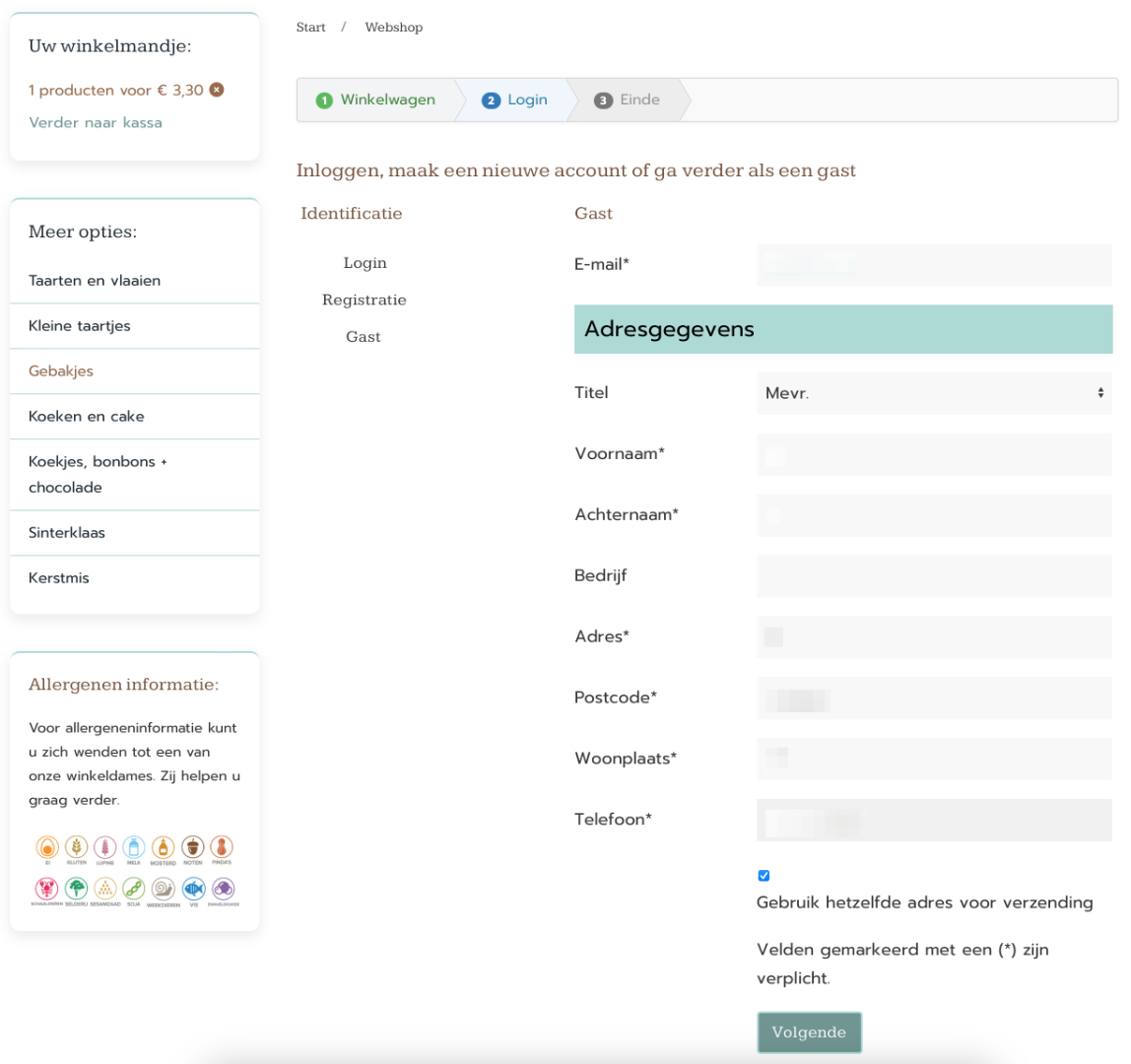 When in the shopping cart, the check-out is being divided into 3 steps: