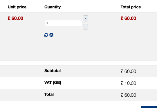 When I apply the code of 10%, the total price reduces by 10% to £54, which is correct including reduction of tax, but the tax line is still saying £10, it should say £9.