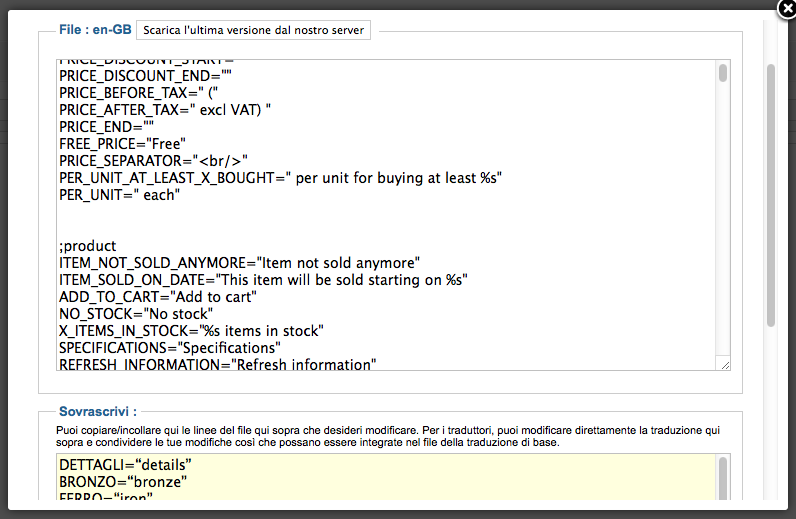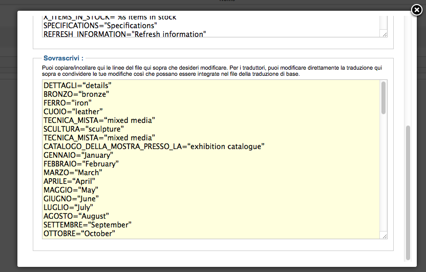 For example, if in italian the text is "Bronzo, Ferro, Cuoio", tha automatic translation need to be "Bronze, Iron, Leather".