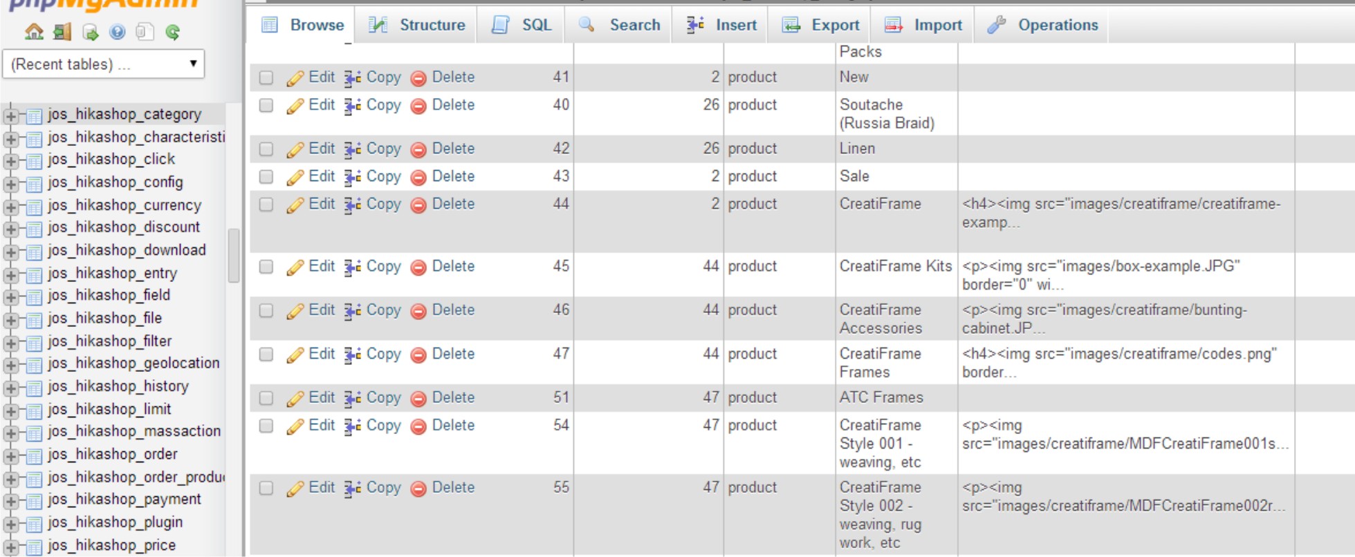 I want to ask you if the names are the same in the category listing (not in the tree, in the table just near) and what is the content stored in the database.