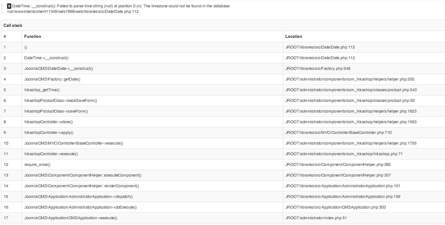 "DateTime::__construct(): Failed to parse time string (null) at position 0 (n): The timezone could not be found in the database "