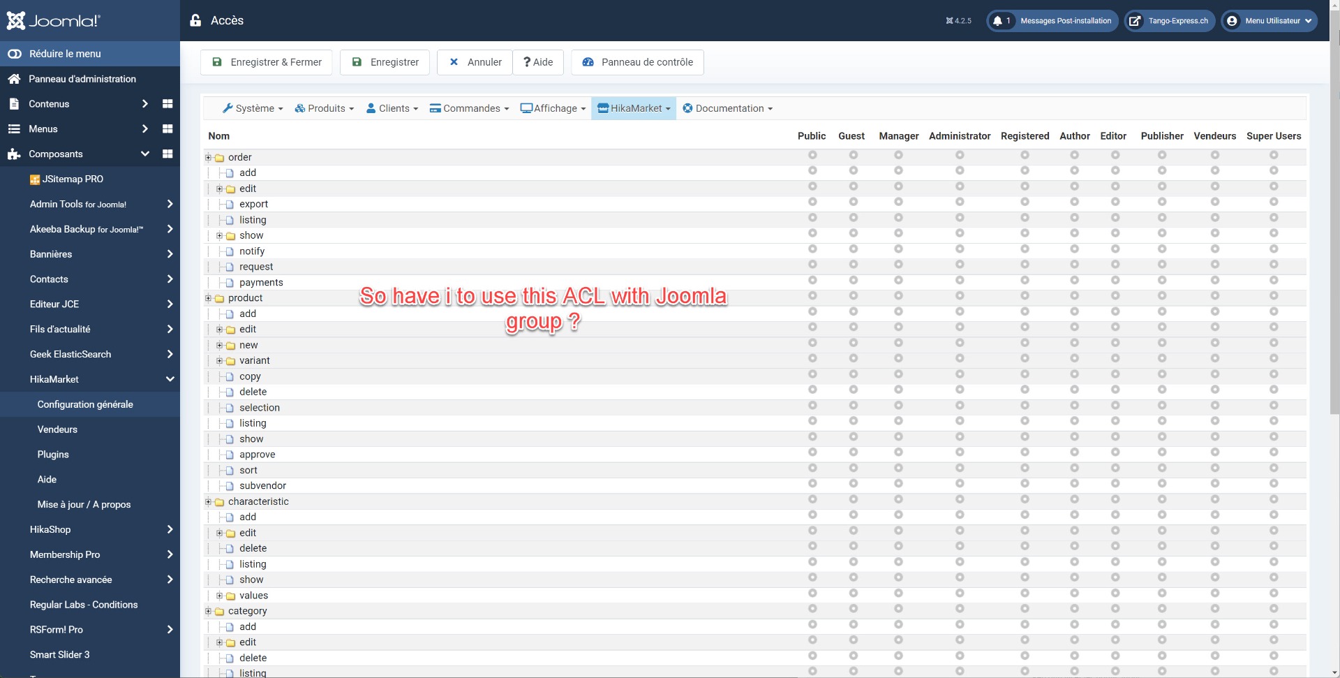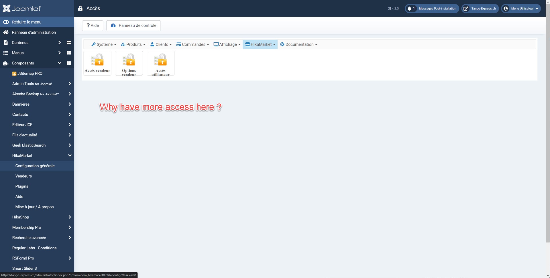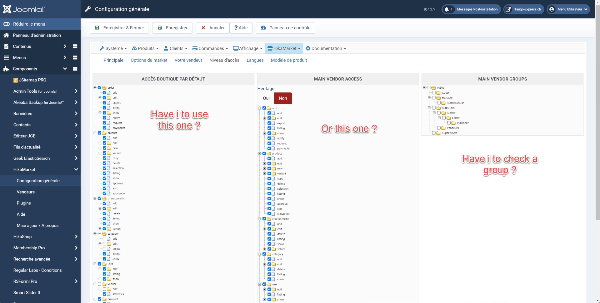 But it is a bit confused with the ACL... Because i see in Hikamarket i have many ACL menu, so i dont understand what menu i have to play with to modify / hide some items for the vendor.
