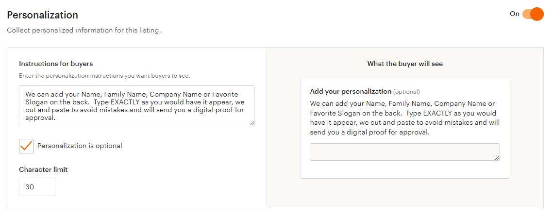 I posted a picture of what etsy uses allows a custom message to the customer and to change the display on the product page.