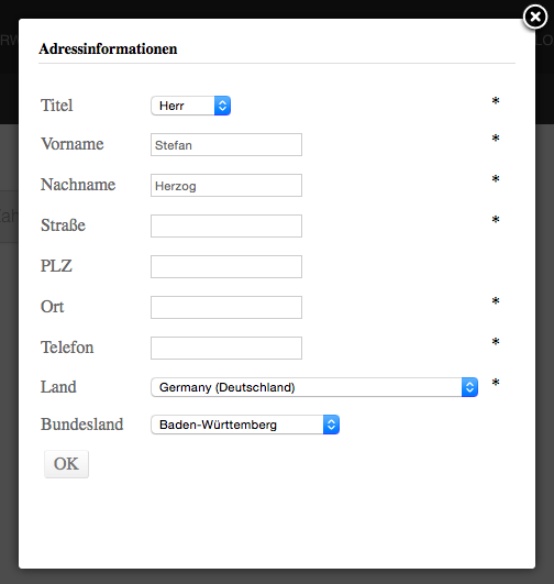 Edit new address form