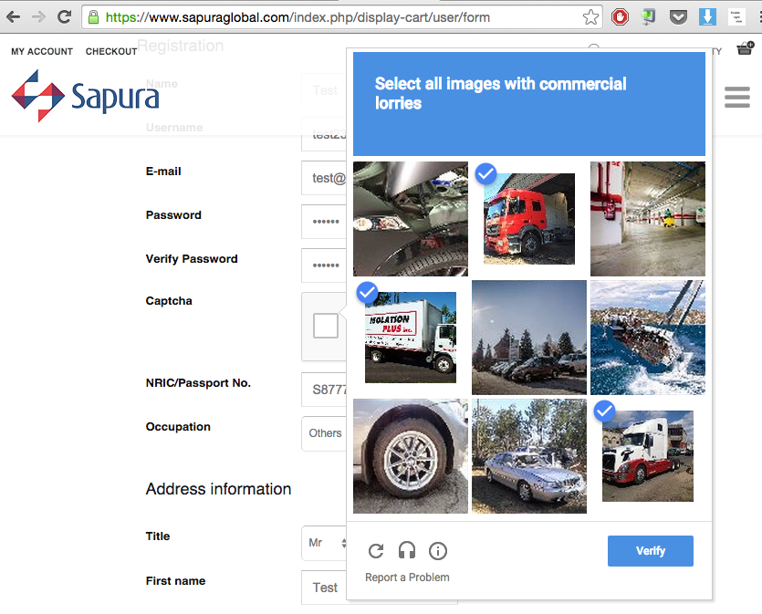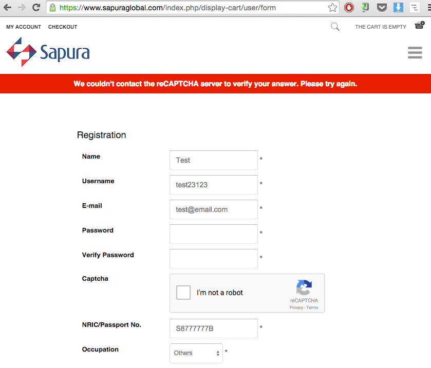 However, today it showed "We couldn't contact the reCaptcha server to verify your answer. Please try again." upon registering.