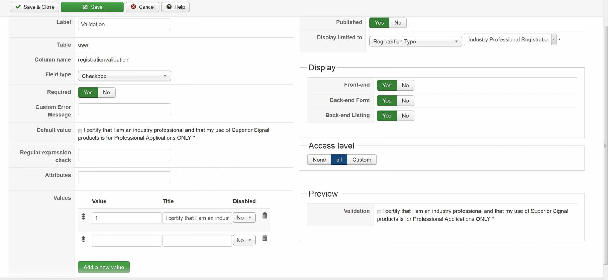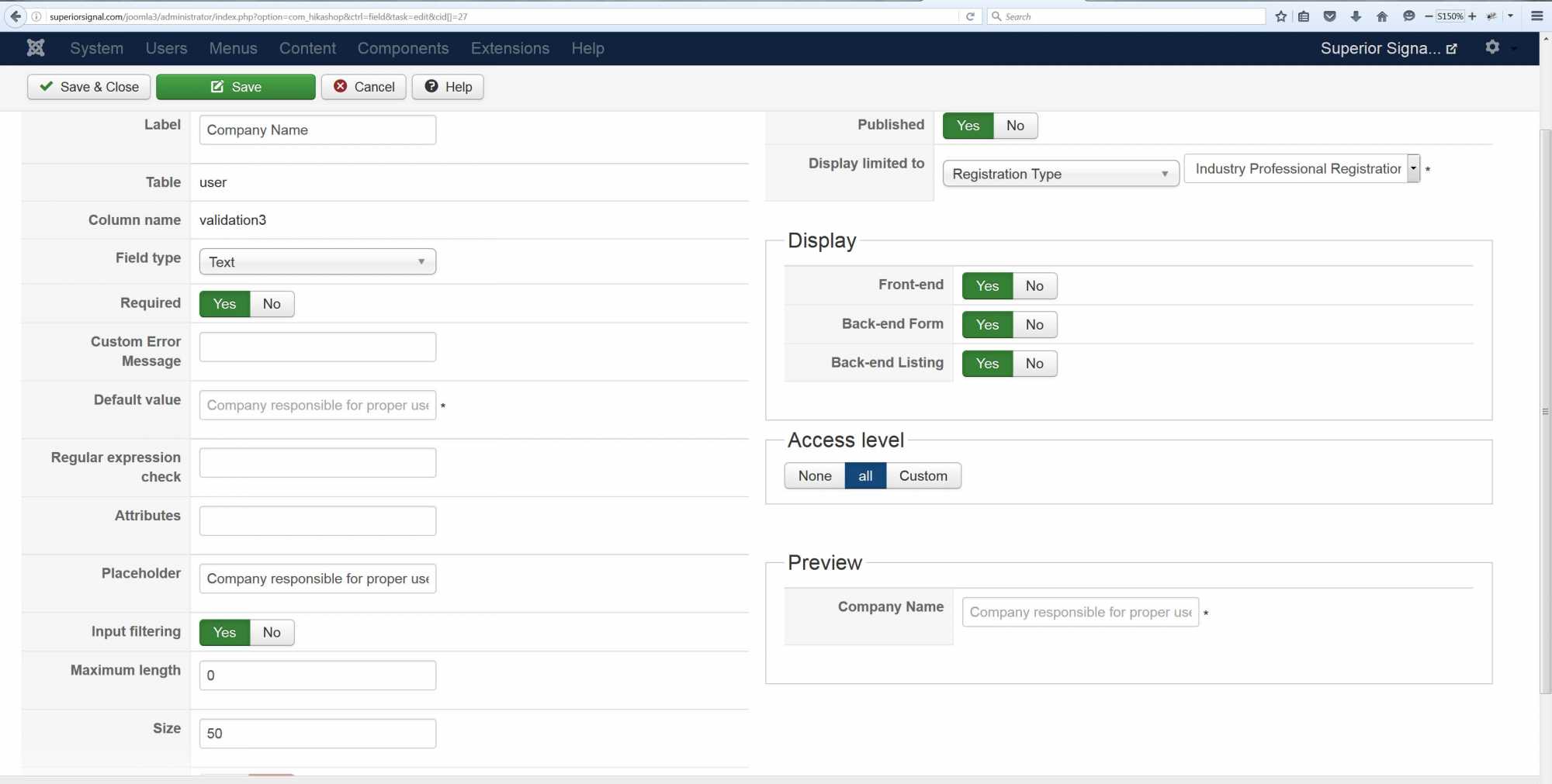 , is used to select which user group is appropriate for the person registering. Option B, has several additional required custom fields that appear when selected and must be filled out before a successful registration. This all works perfectly. The problem is when a registered user goes to edit his profile. When selecting option B the custom fields appear as they should, however if the user hits save WITHOUT filling out those additional required fields, the user's group is successfully changed to the Option B level despite having not filled out the required fields associated with option B. The page does show "you must fill out the required fields" errors, but it is still saving data from the fields that have been populated. This makes the requirement useless. I realize that the "Edit profile page" is a Joomla page, how can i get it to recognize the "field requirement" from a hikashop custom field?