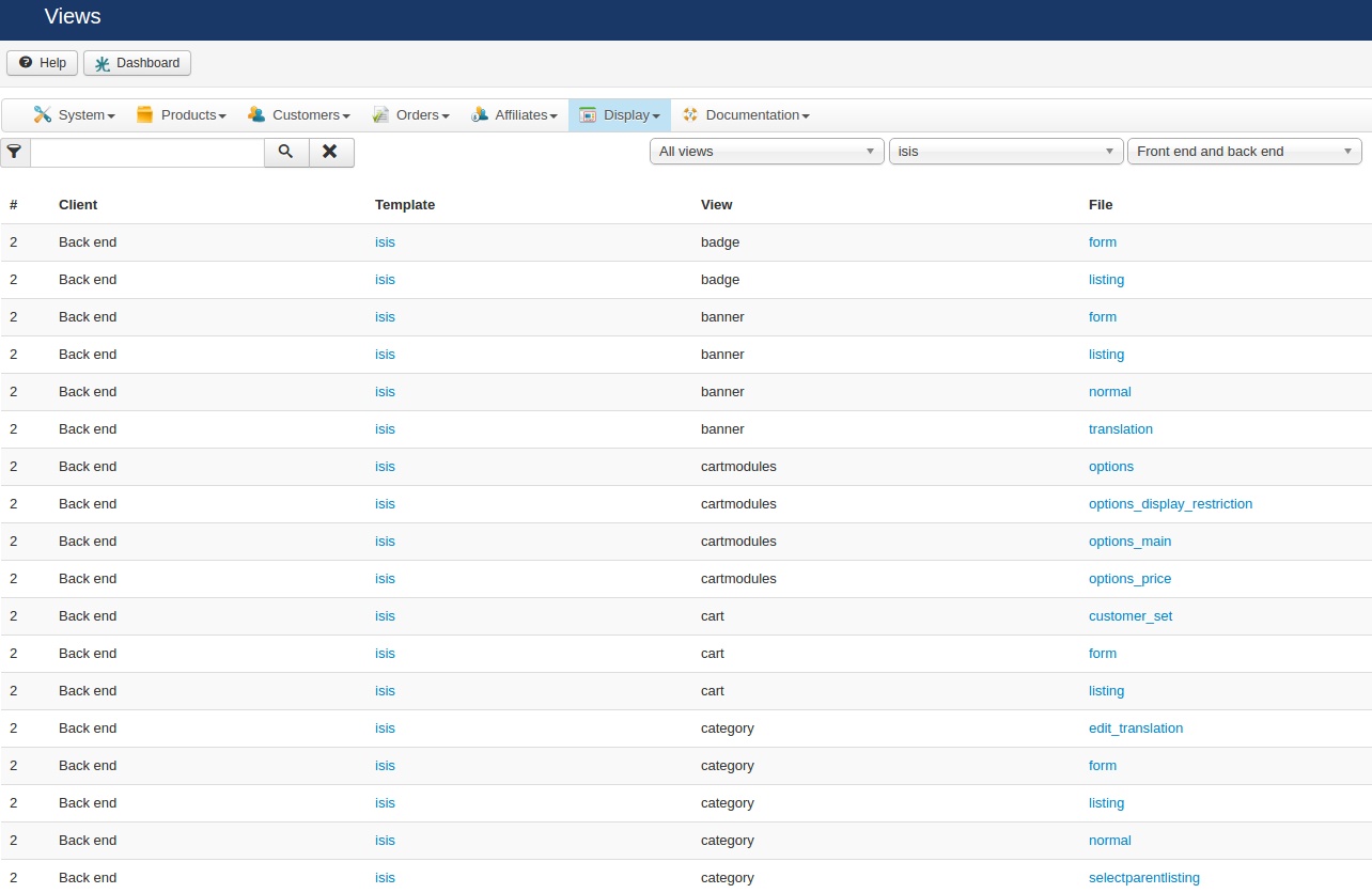 And you'll see that Isis is the backend template. Yup, changes in the view for the backend template will be affecting the backend, indeed.