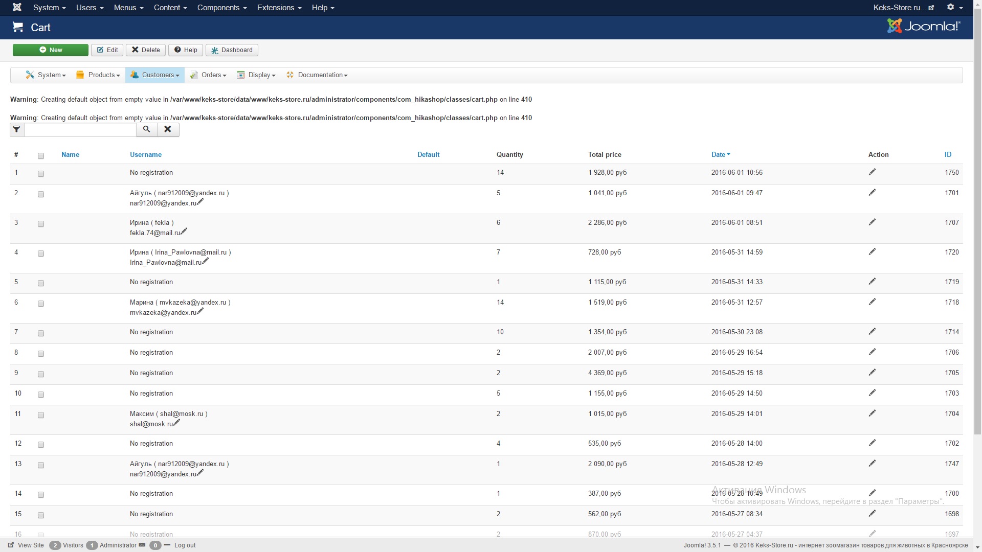 Hello, today there was an error (see screen) when entering the admin section of the basket shoppers. What could it be? This message appears only when the buyer is not registered and added a product to the cart.