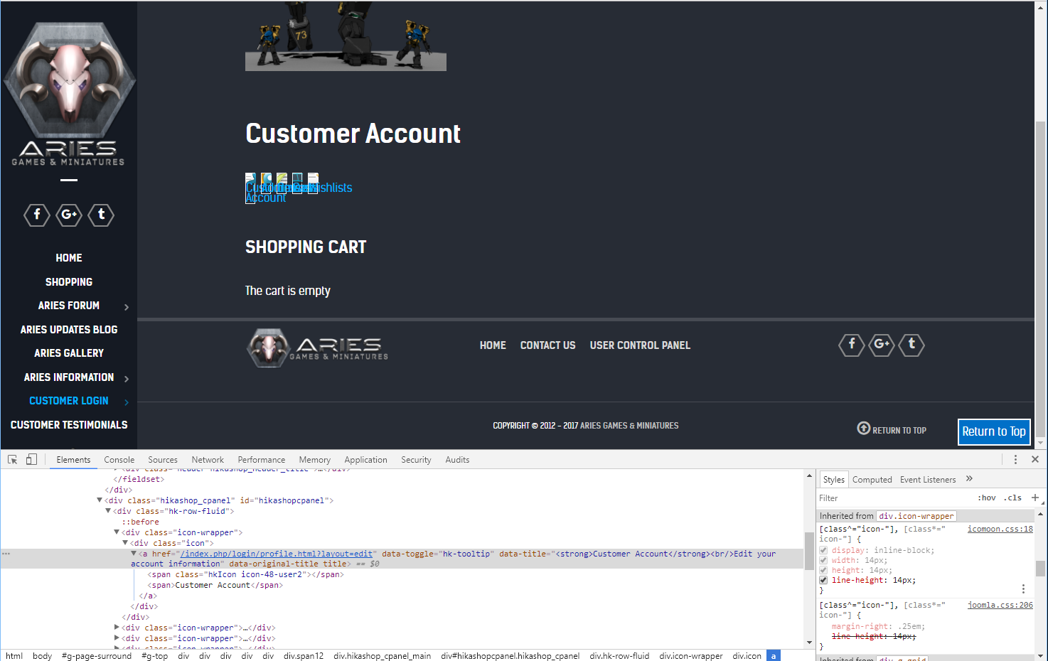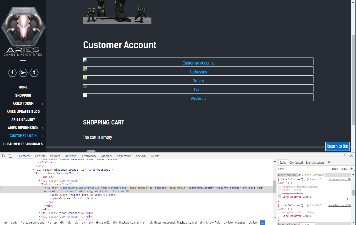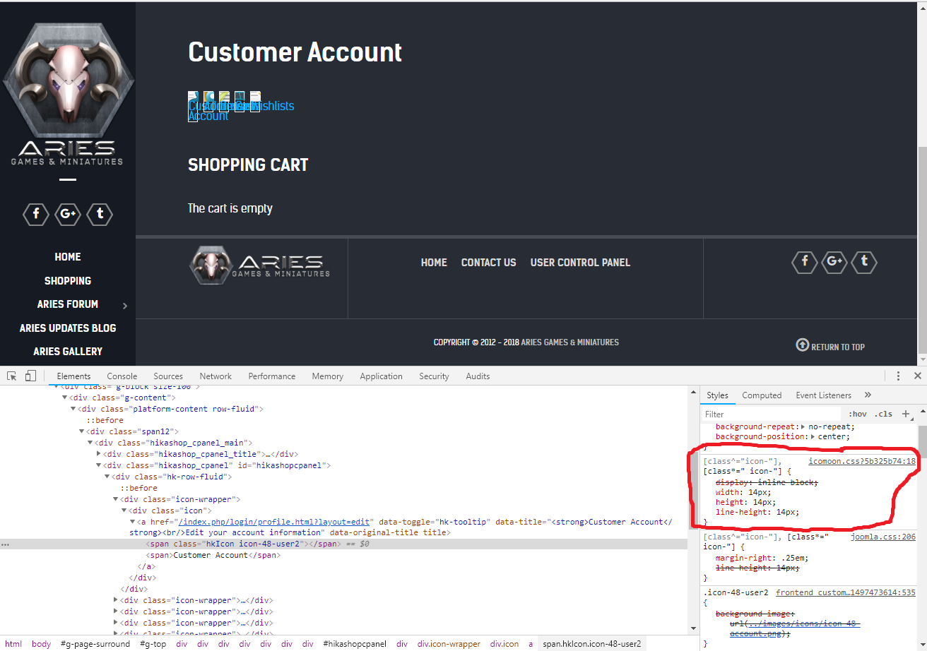 Regarding the user control panel, if you reverted to the "default" selection of the "frontend" HikaShop CSS file and you still have a display issue, then please also delete the file templates/YOUR_TEMPLATE/com_hikashop/user/cpanel.php in order to use the default view file of HikaShop.