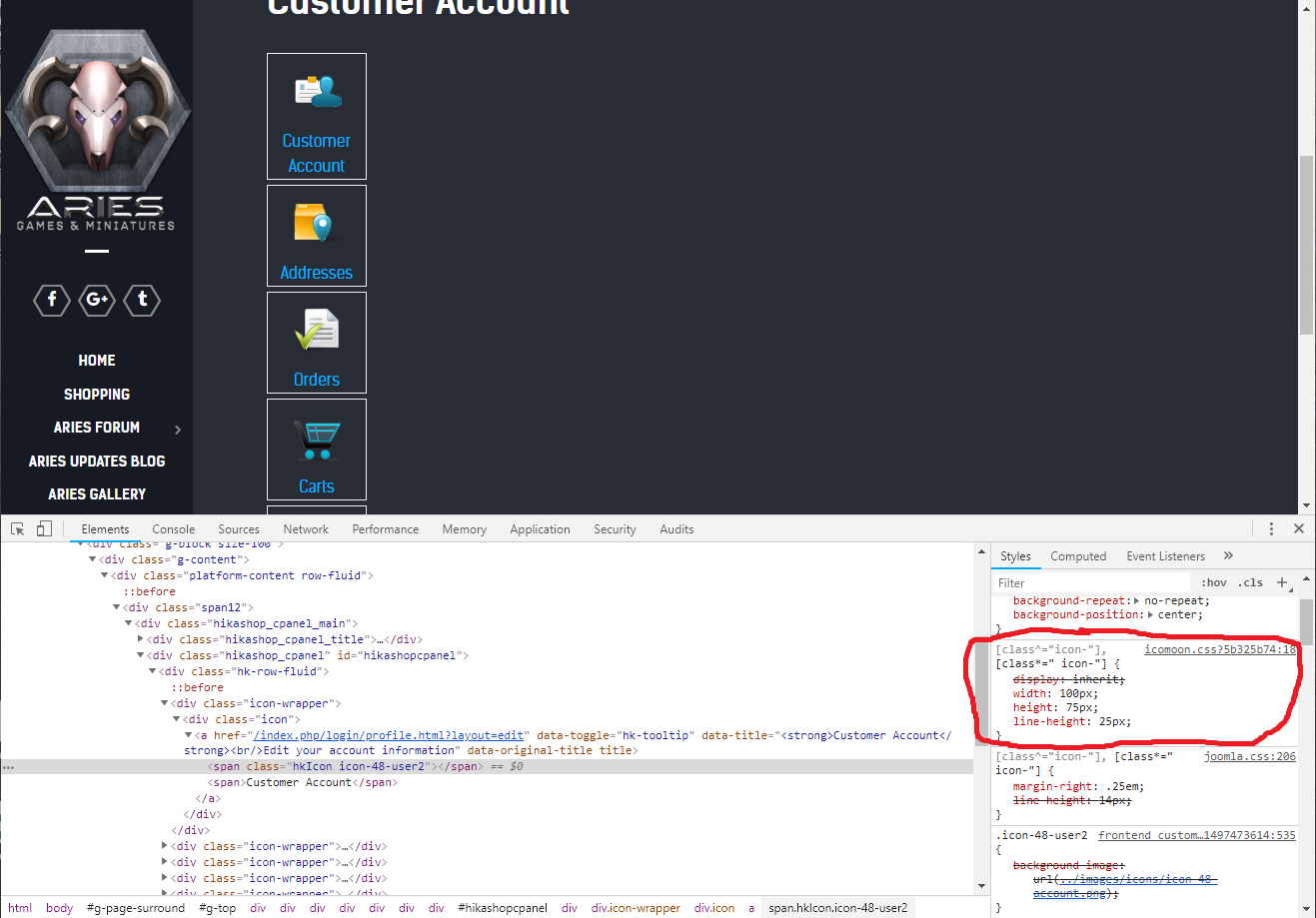 Went into the admin panel, to HikaShop configuration, then Display, then CSS