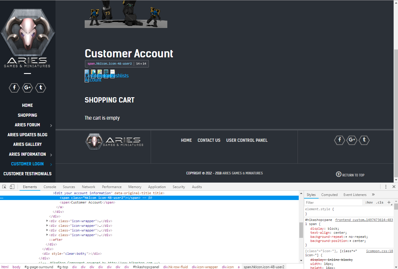 Regarding the user control panel, if you reverted to the "default" selection of the "frontend" HikaShop CSS file and you still have a display issue, then please also delete the file templates/YOUR_TEMPLATE/com_hikashop/user/cpanel.php in order to use the default view file of HikaShop.