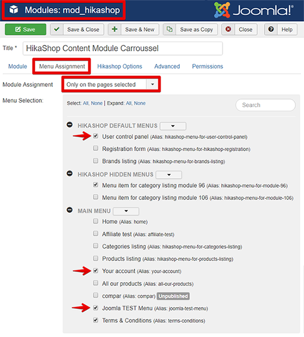 On this screenshot the module will be displayed only on the menu spotted with a red arrow.