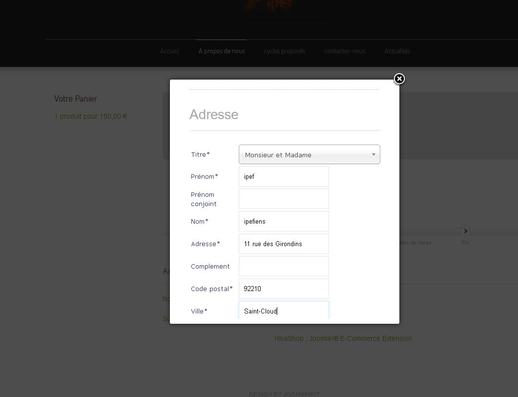- Si vous avez une popup pour l'édition des adresses, c'est que vous avez l'option "checkout legacy" activée dans votre configuration HikaShop et donc vous utilisez l'ancien système de passage en caisse. Passez sur le nouveau et vous n'aurez plus le soucis car plus de popup.