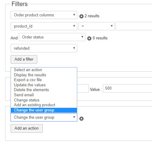 I followed your instructions, but when I go to set the action I only see an option "change the user group" which when selected does not show any additional setting.