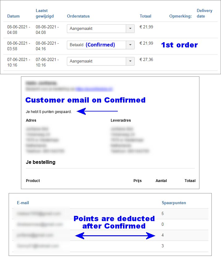 So you still have the same issue for the order statuses. If the order receive any of these order statuses, the order is declared as "confirmed / paid" and the customer gets points.