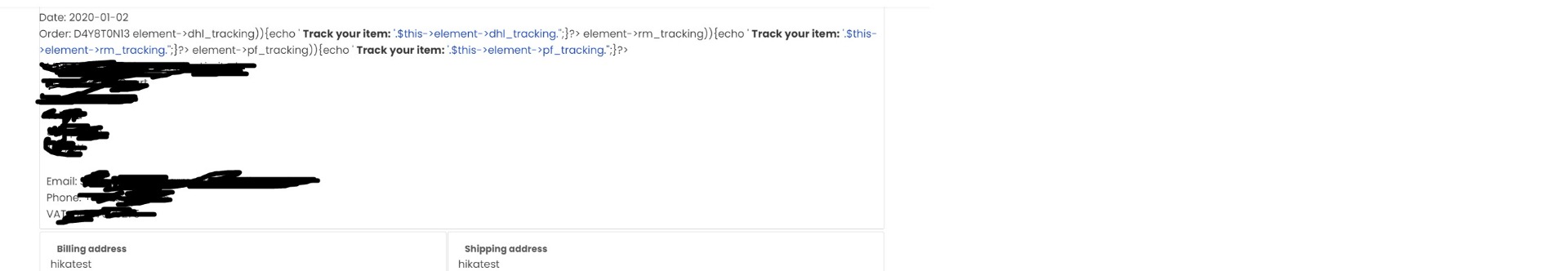 -- Error-message(debug-mod must be tuned on) -- : element->dhl_tracking)){echo ' Track your item: '.$this->element->dhl_tracking.'';}?> element->rm_tracking)){echo ' Track your item: '.$this->element->rm_tracking.'';}?> element->pf_tracking)){echo ' Track your item: '.$this->element->pf_tracking.'';}?>