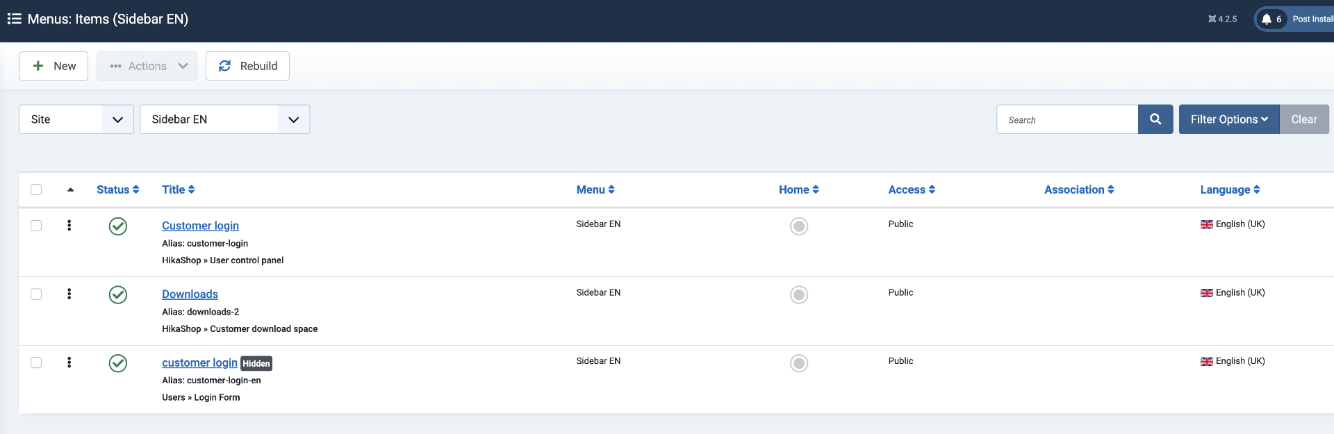 After migrating our webshop to Joomla 4, users aren't able to log-in using the "Hikashop user control panel" menu item. it returns a 404.