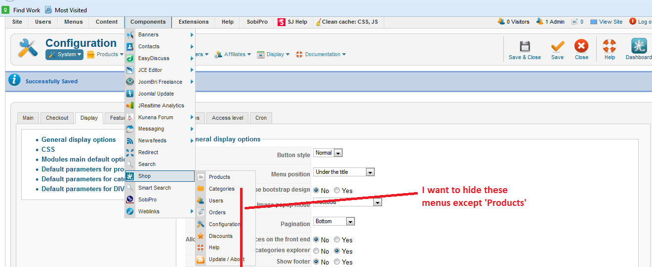 - Even if you managed to hide all this as well (which will be a lot of work), anyone accessing the backend including yourself will not see it anymore, means you'll be unable to change any setting other than related to "Products" unless going through major hassle to make things accessible again.