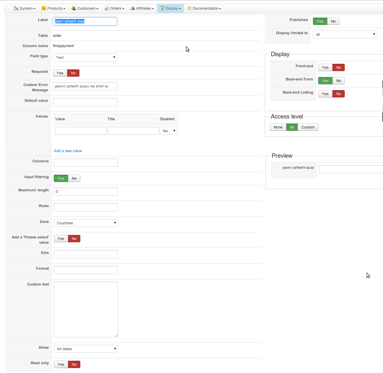 i created an order table custom field called "firstpayment". (text type) attached screen capture.
