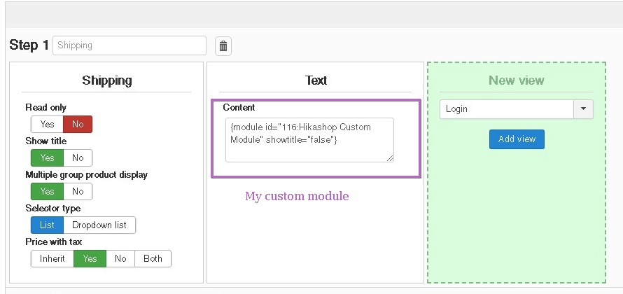 I configurated this module to be visible in Hikashop Checkout, using the