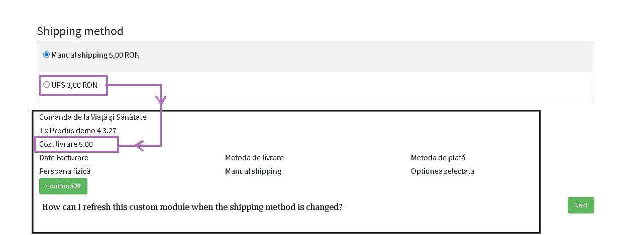 And now, i need the module to refresh himself when the shipping method is changed, how can I do this?