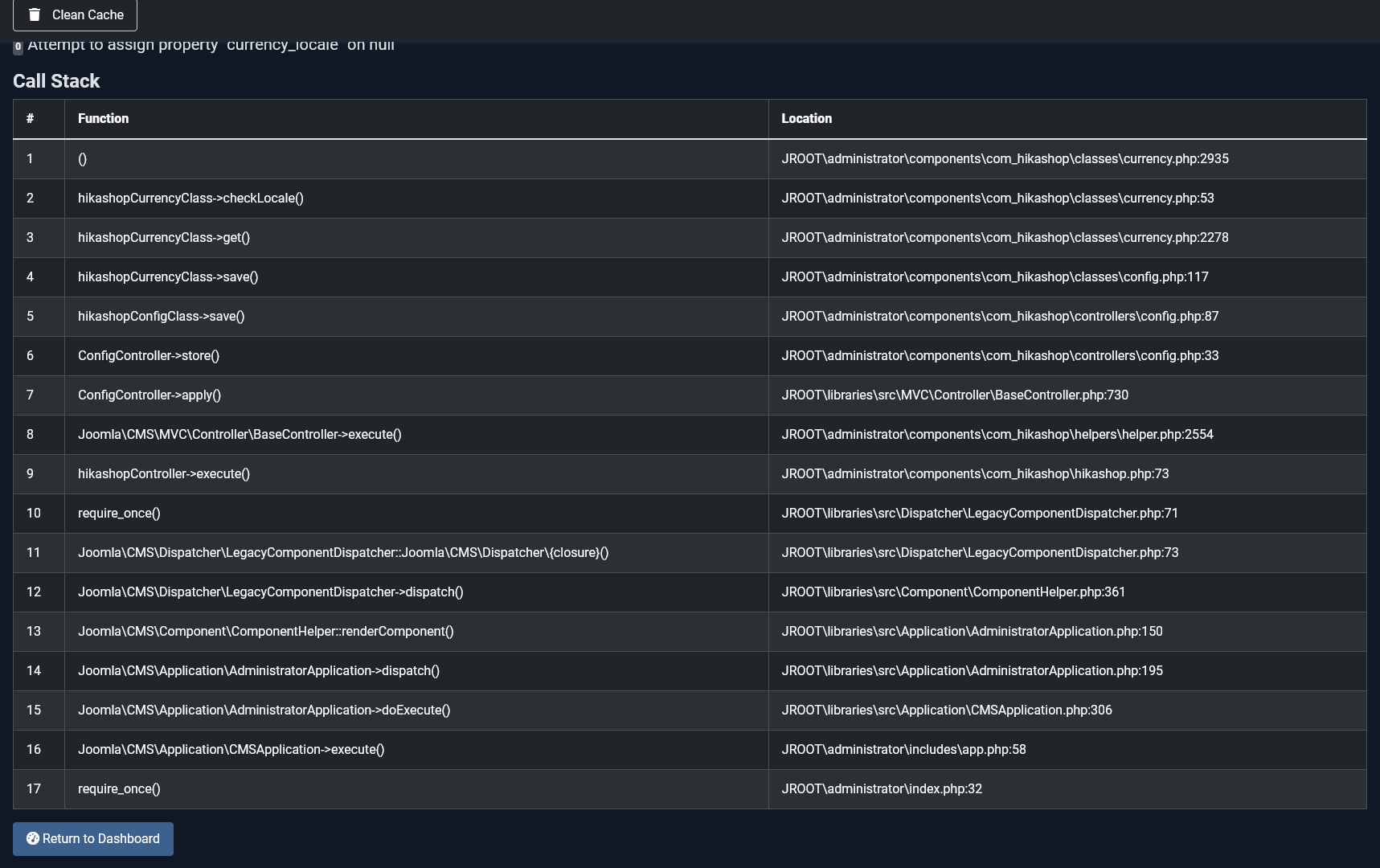 This indicates that something is trying to load the data of a currency based on its currency code, but the currency entry in the hikashop_currency table in the database doesn't exist.