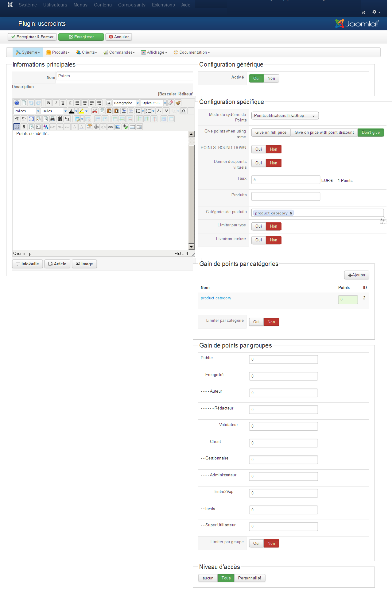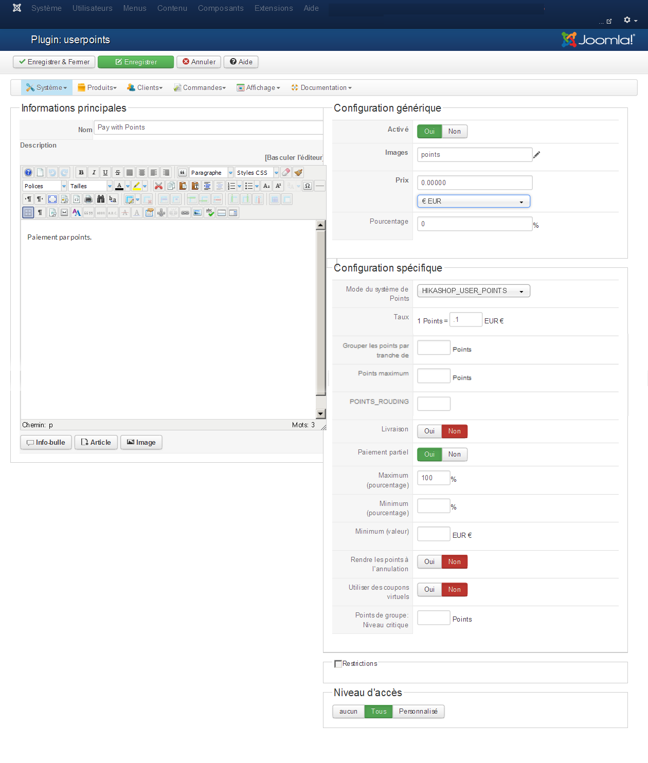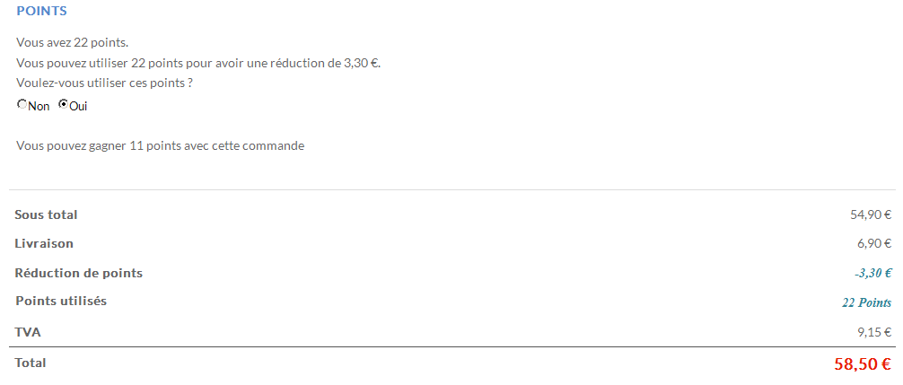 Jerome wrote: 1) Vous devez ajouter le bloc "Points utilisateur HikaShop" si vous voulez voir le solde des points durant le passage en caisse. [...]