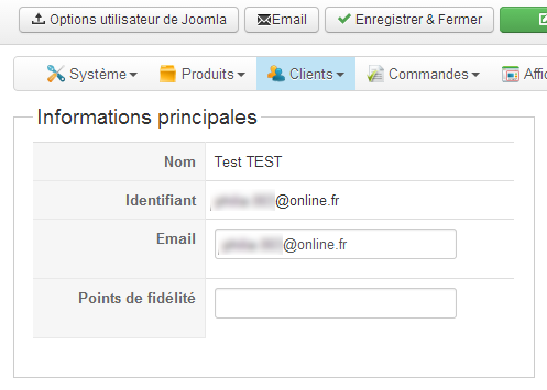 - Vérification dans le menu Clients du backoffice : User Points = champ vide. Vérification dans la base de données (= xxxx_hikashop_user) = NULL.