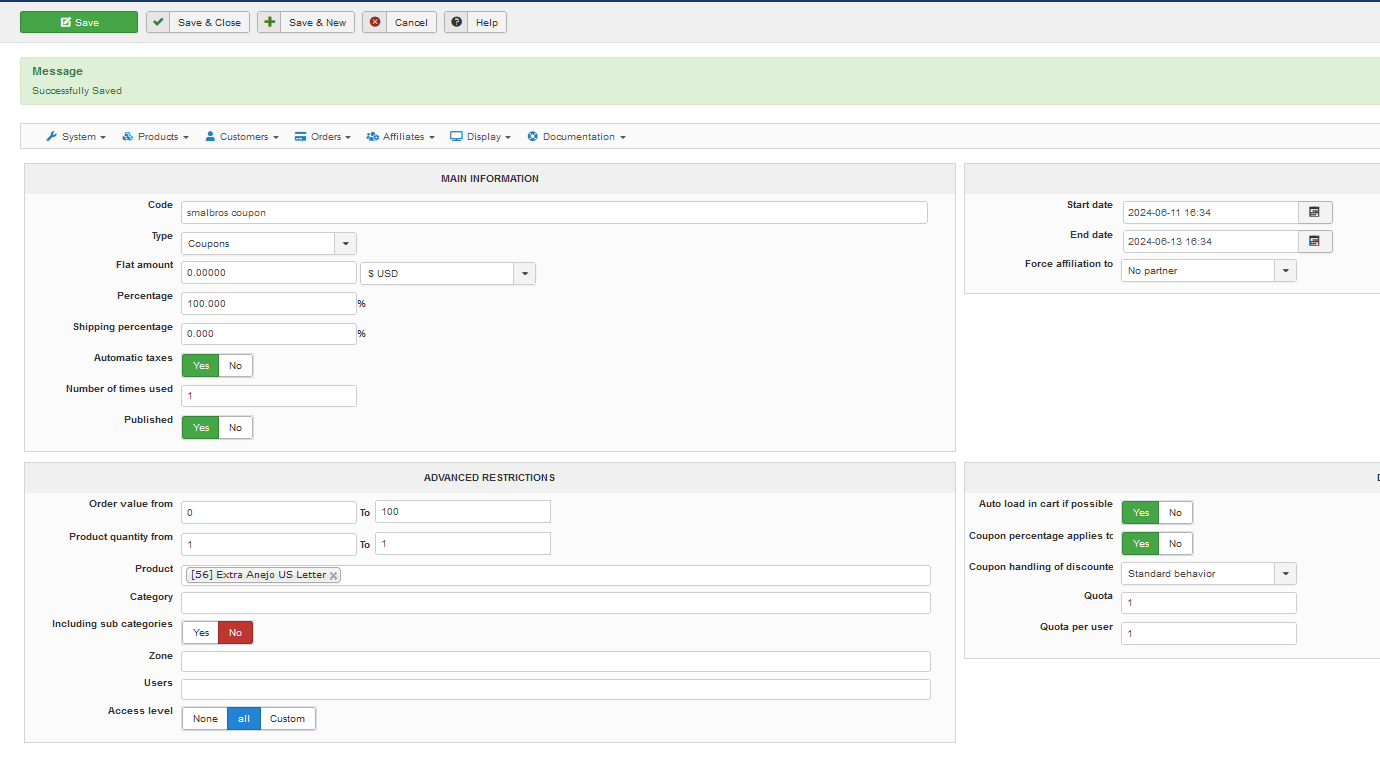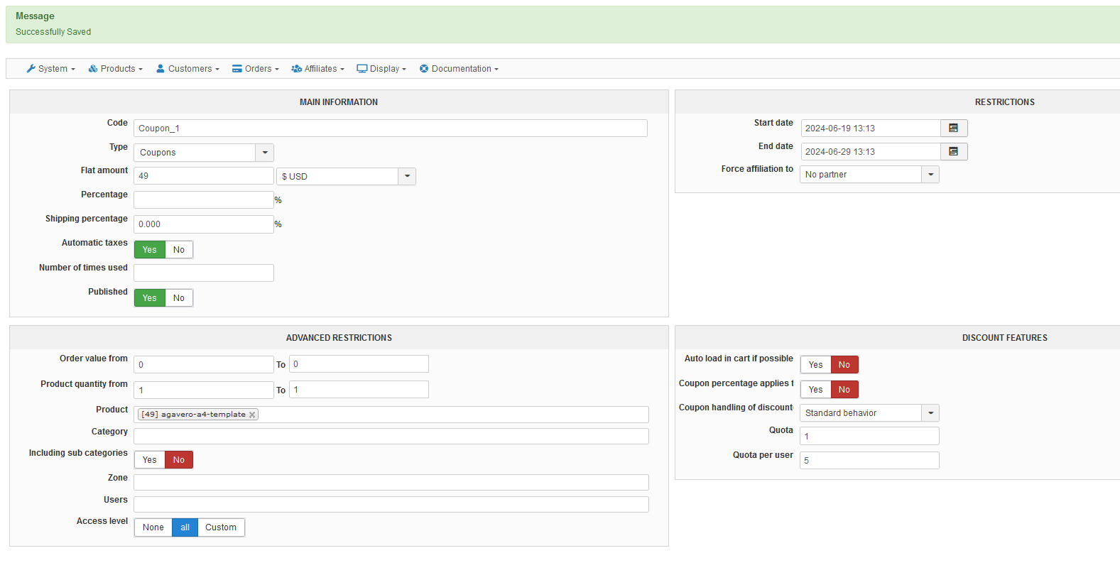 If you have already your coupon block in your checkout, reproduce this settings screenshot (by adapting it here or there to your needs of course, dates, discount, category etc!).