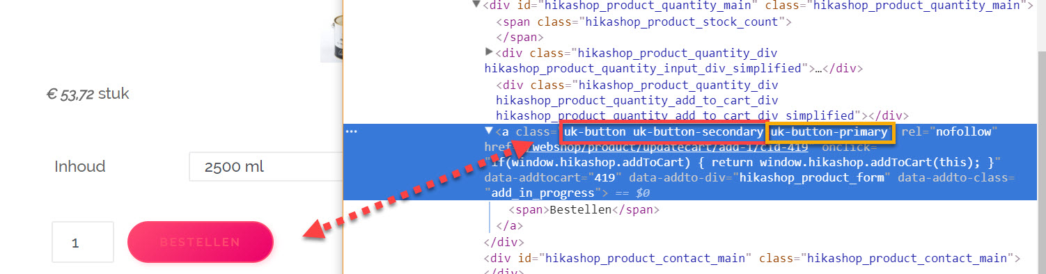 But this situation give a problem as you see. Because when you use the extra CSS class, the extra CSS will be placed behind the CSS for normal shop buttons like this: