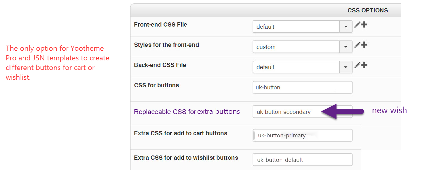 As you know you can add an extra CSS class for cart and wishlist. That's very nice.