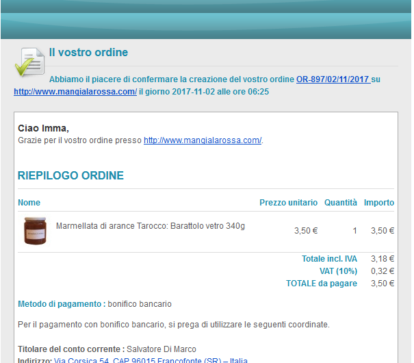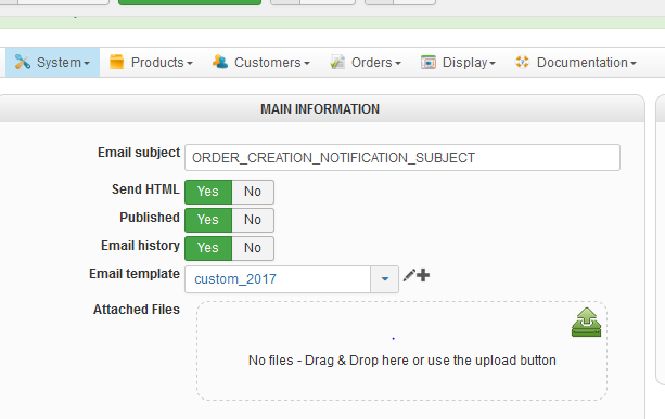 Email "order creation notification"
