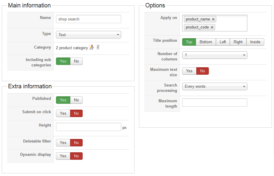 And don't forget to set the "Fields" on which you want to make the search. Ex: product_name and/or product_code.