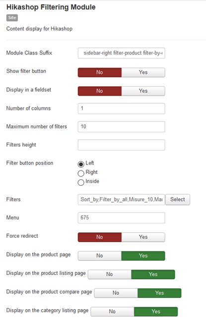 - IMAGE 1: my HIKASHOP filter module configuration. I set the MENU parameter with the menu id where is possible to see the filter