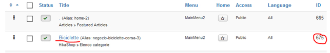 - IMAGE 2: the menu item where is shown the filter module, on the left side of the page. In this page, is possible to see the product of category BICICLETTE