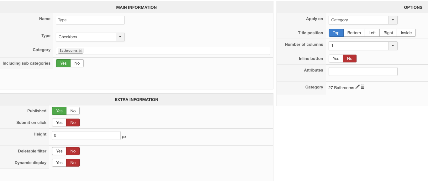 When i select an option from my filter it brings up "product category" then a bunch of random products (that are not in my bath category)