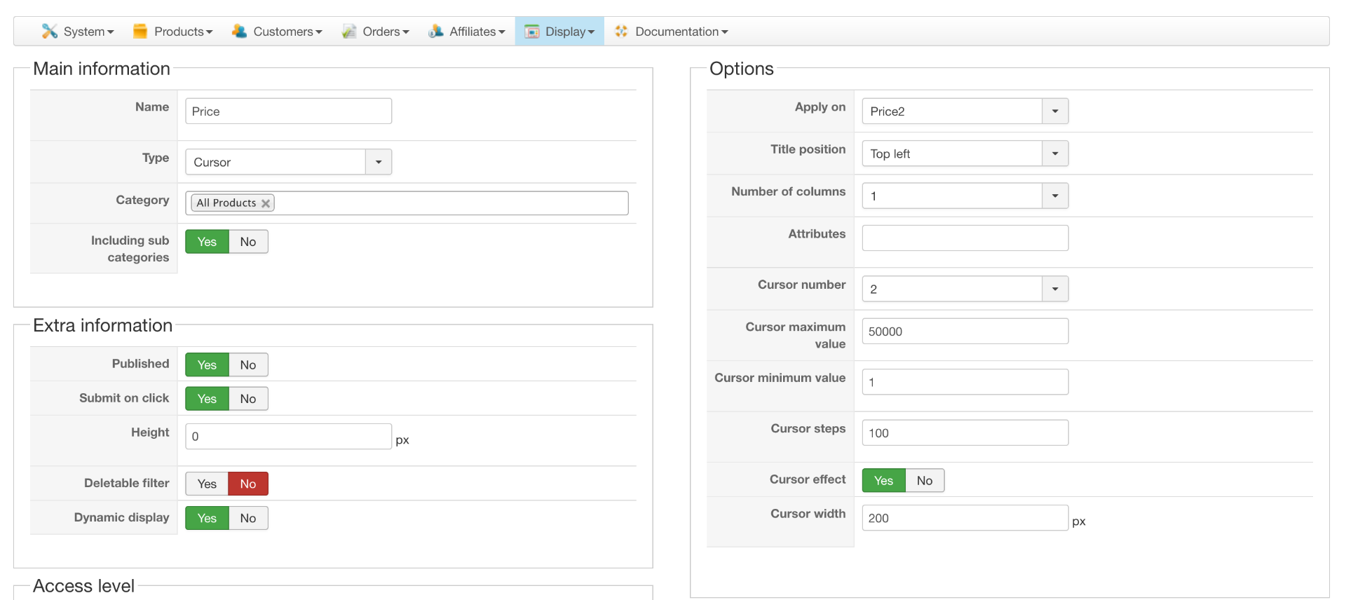 It's as if the file "filter" of the view "product" had been changed to discard the dynamic min/max.