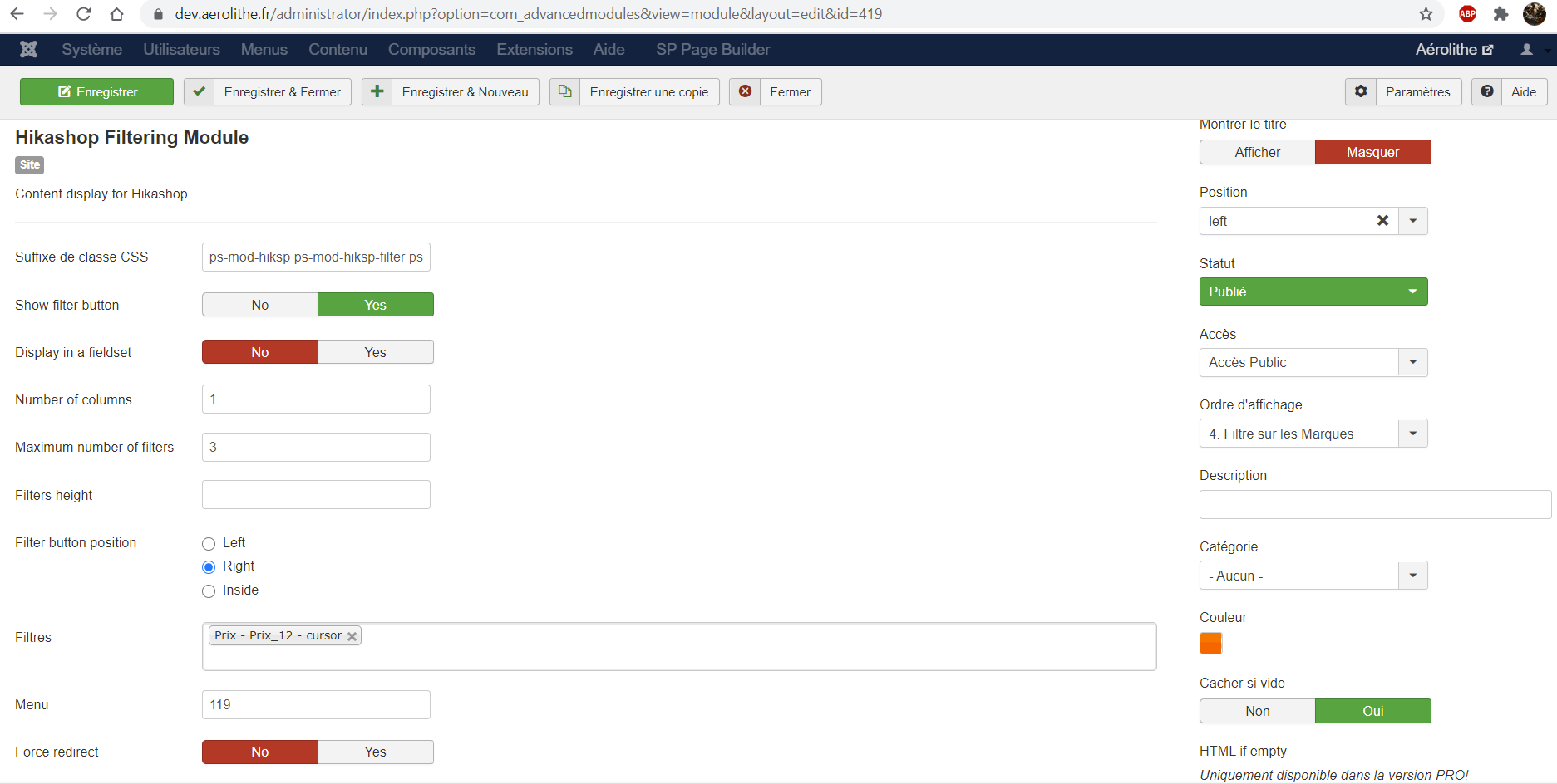 I have a bug here : when i filtre by price, all the items display, even those who are lower or higher the filter...