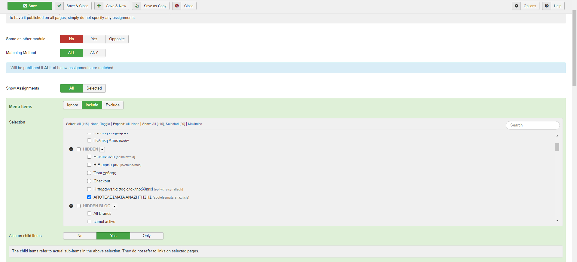 I can see that when I use the search field there, I get redirected to the menu item with the alias "apotelesmata-anazitisis".