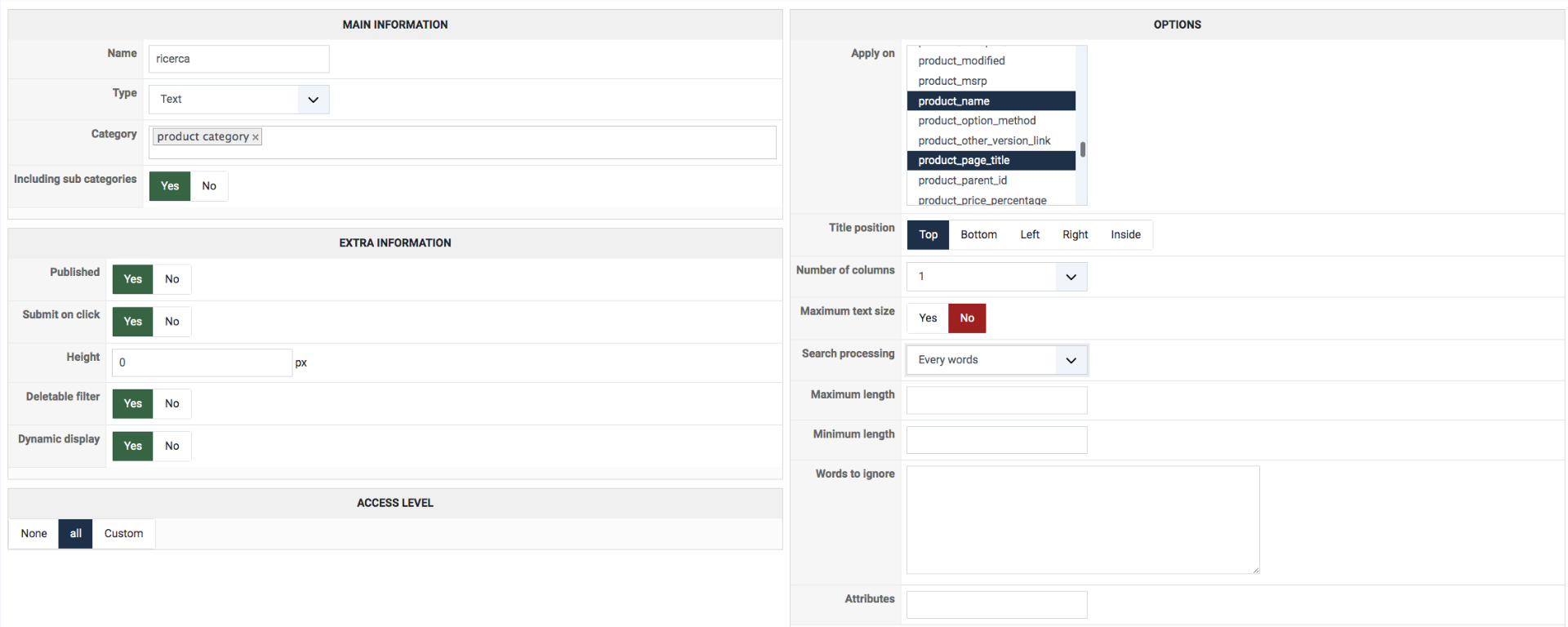 I think the simplest would be to directly modify the file components/com_hikashop/views/product/view.html.php in order to dynamically change the products listing loading query in the listing function to use a UNION of twice the same query, changing only the filters on the columns of the filter when the "every words" mode is selected.