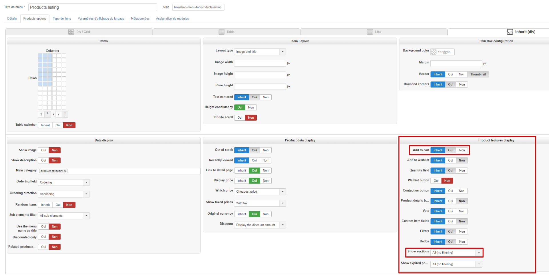 That's because you didn't set the "add to cart" option to NO through the configuration page of your product listing content menu. I thought you wanted to display an "auction only" product listing.