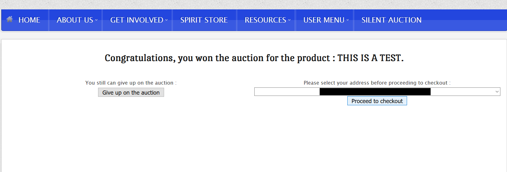 Upon winning an auction, I receive the email notification. When I click the link, I'm taken to: