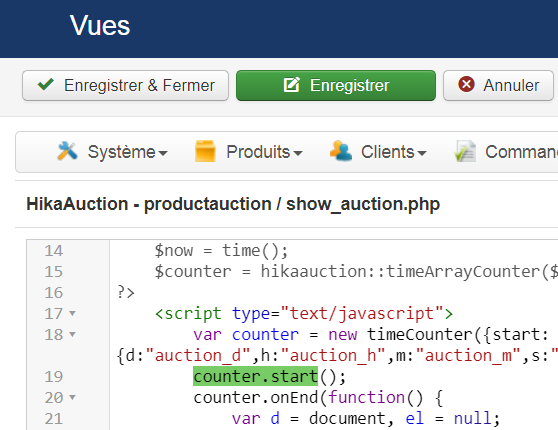 via the menu Display>Views and it will prevent this particulat javascript error, without changing the behavior of the counter system. That should in turn allow HikaSerial to initialize itself and the bid button should then work properly.