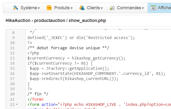 This prevents the javascript of HikaAuction from being properly initialized, leading to the button not responding properly.