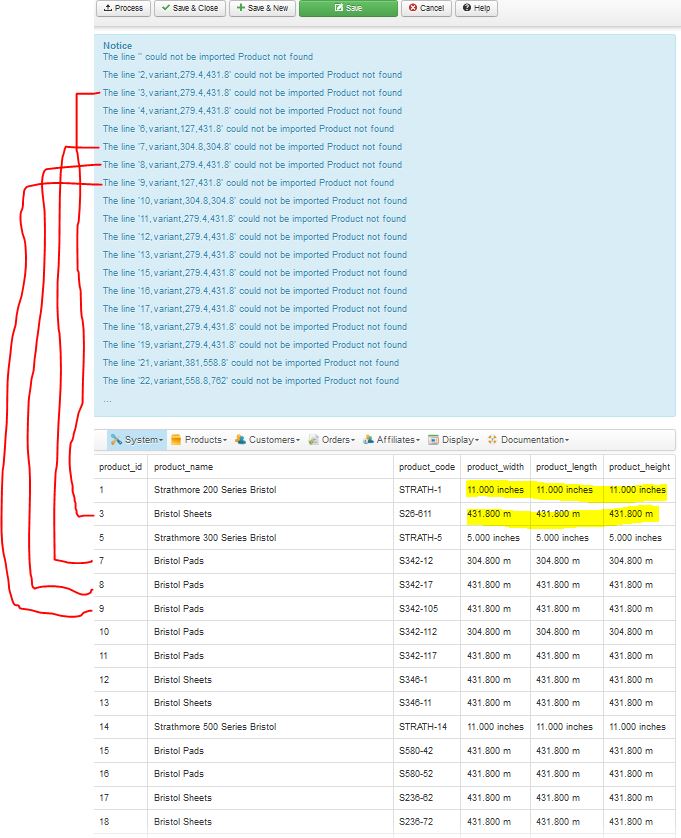 // Get the missing product_code / product_id