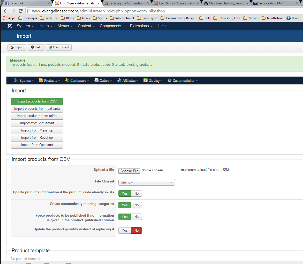 Recently, My imported products are not showing in my products list in hikashop. I get a success message, but the products won't display. I have checked each level of products, from root all the way down to sub catagories. They are not there.