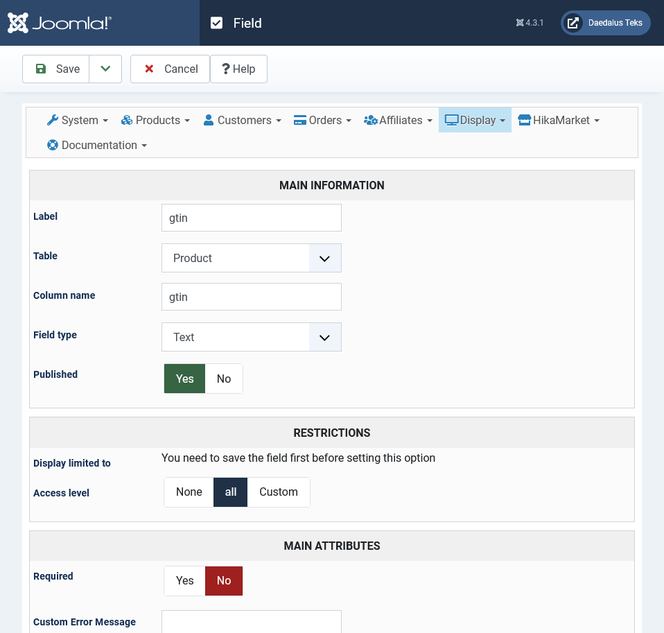 Does this look right? What do you mean you'll get the field when you edit each product? And I have to add a gtin number to the product myself? So I have to go through all 4000+ products and create a random gtin? I'm so lost.