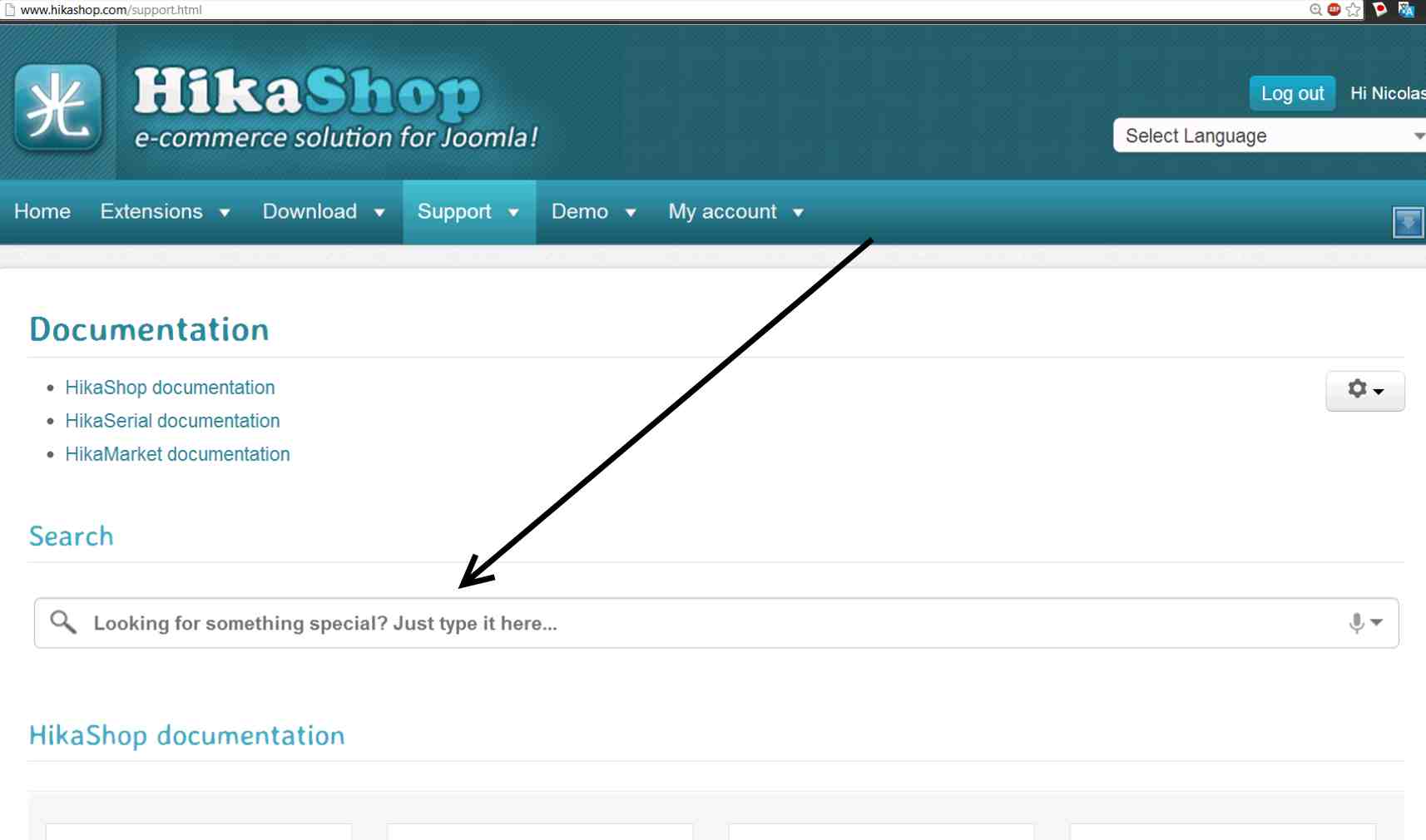 I find the word by have a look to code source but i don't find the search form . If i click Support Documentation , there is no search input form !!! The only search input i find is on the forum ?