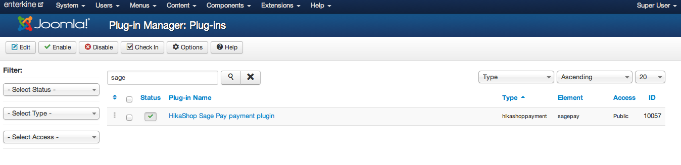 I have installed Hikashop, the payment and shipment plugin are displaying in the main joomla plugins folder. When I enable them and the click Basic Options and then Hikashop options, the plugin is not displaying to enable me to configure it.