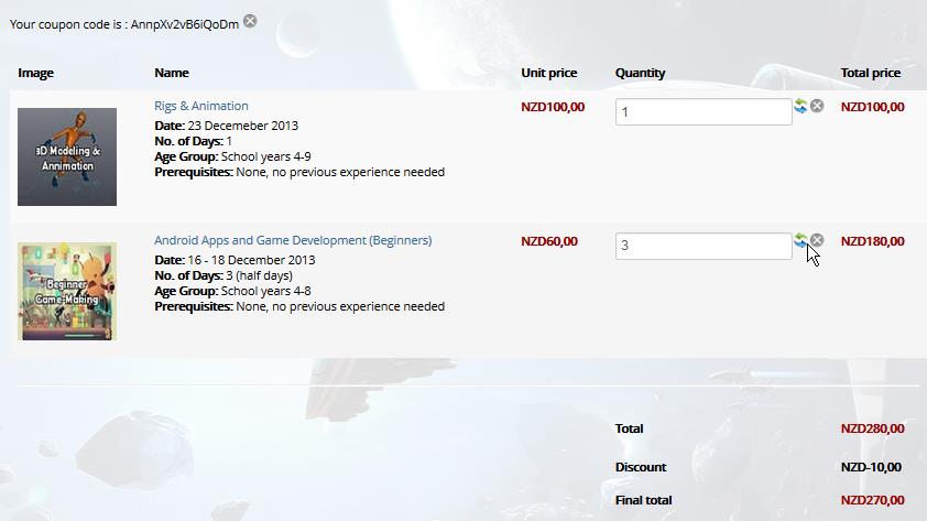 What the checkout shows - discount